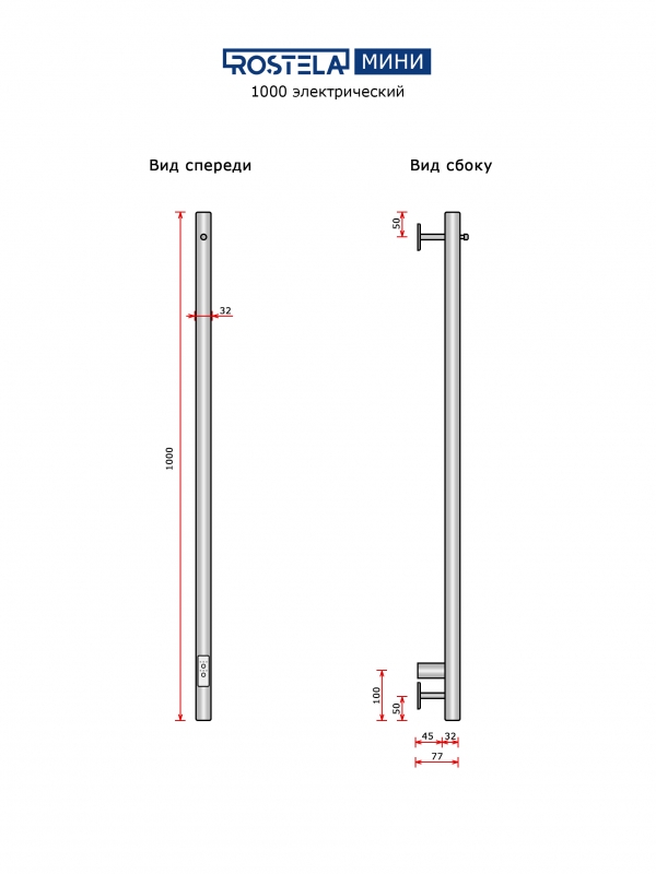 Полотенцесушитель Ростела Мини 1 1000/1 с крючком (диммер) хром