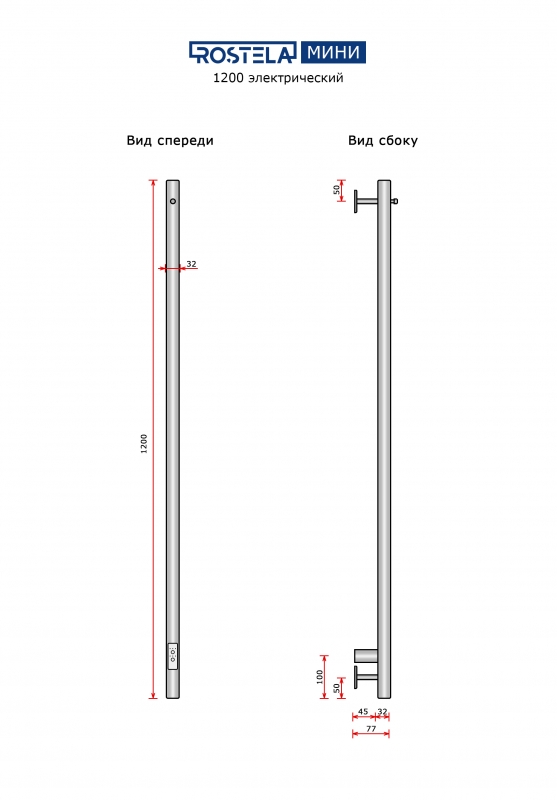 Полотенцесушитель Ростела Мини 1 1200/1 с крючком (диммер) хром