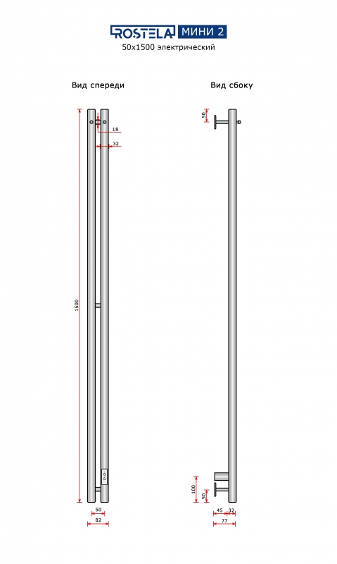 Полотенцесушитель Ростела Мини 2 50х1500/2 с крючками (диммер) хром