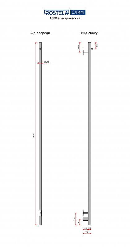 Полотенцесушитель Ростела Слим 1 1800/1 с крючками (диммер) хром