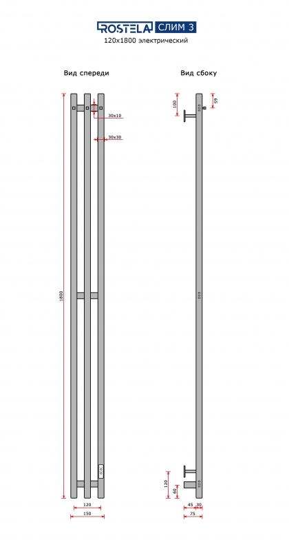 Полотенцесушитель Ростела Слим 3 120х1800/2 с крючками (диммер) хром