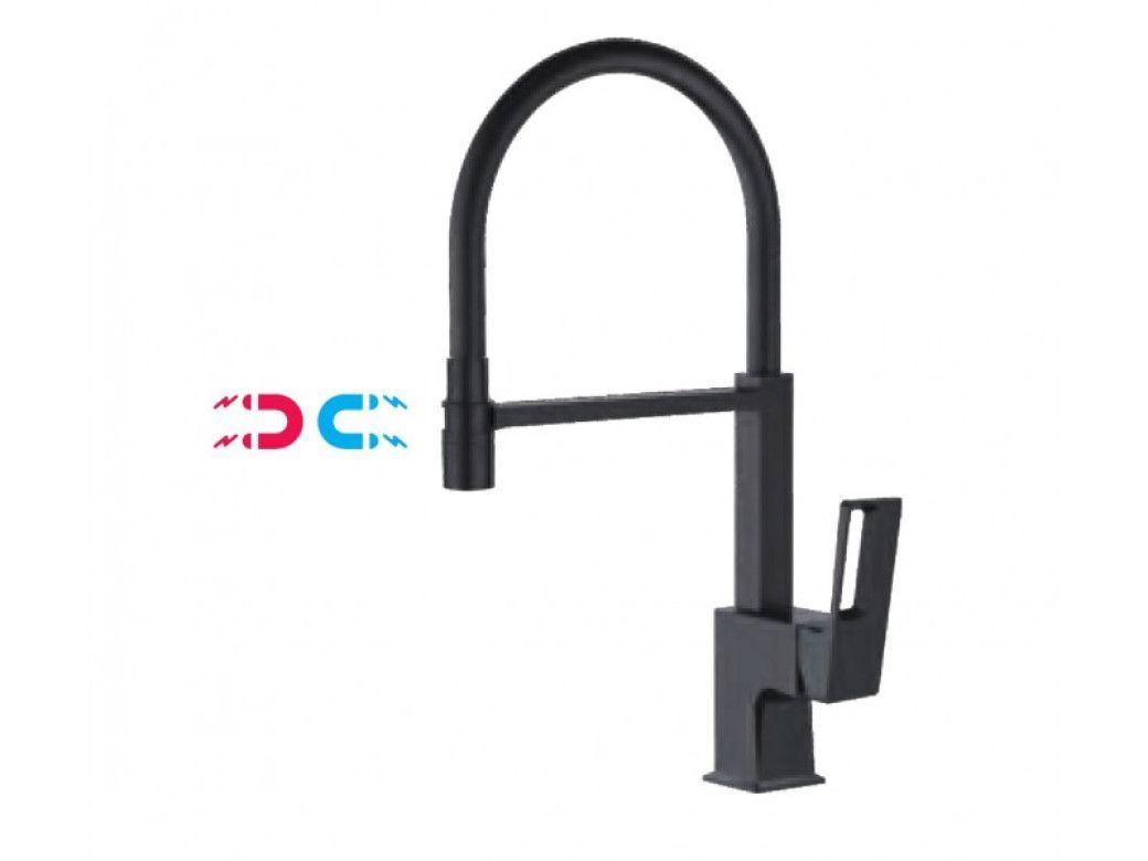 Смеситель для кухни с гибким силиконовым изливом, с аэратором с двумя режимами и фиксацией излива на магните.