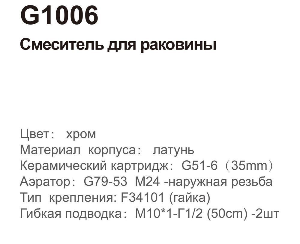 | Комплектация | Гибкая подводка (2 шланга для воды); Комплект крепления; Общая инструкция-вкладыш по сантехнике GAPPO; Ключи,накладки (если предусмотрено комплектом) |