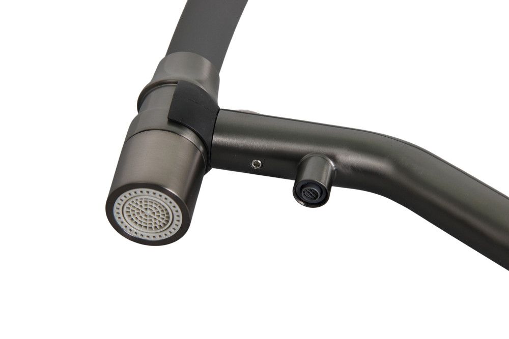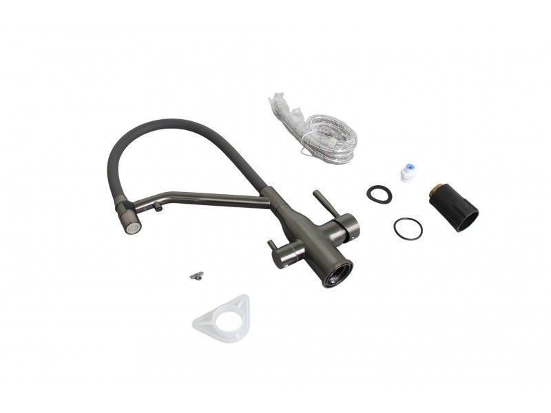Смеситель для кухонной мойки с гибким силиконовым носом-изливом и функцией подключения фильтра воды.