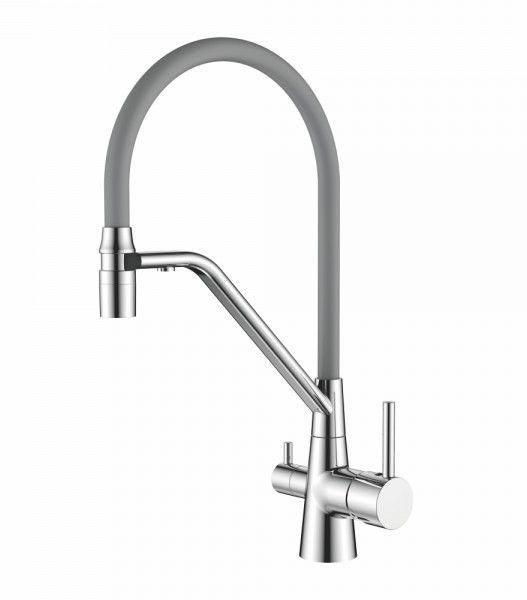 Смеситель для кухни Ledeme L4897-9 с гибким силиконовым изливом, фиксацией излива на магните и с функцией подключения фильтра питьевой воды;