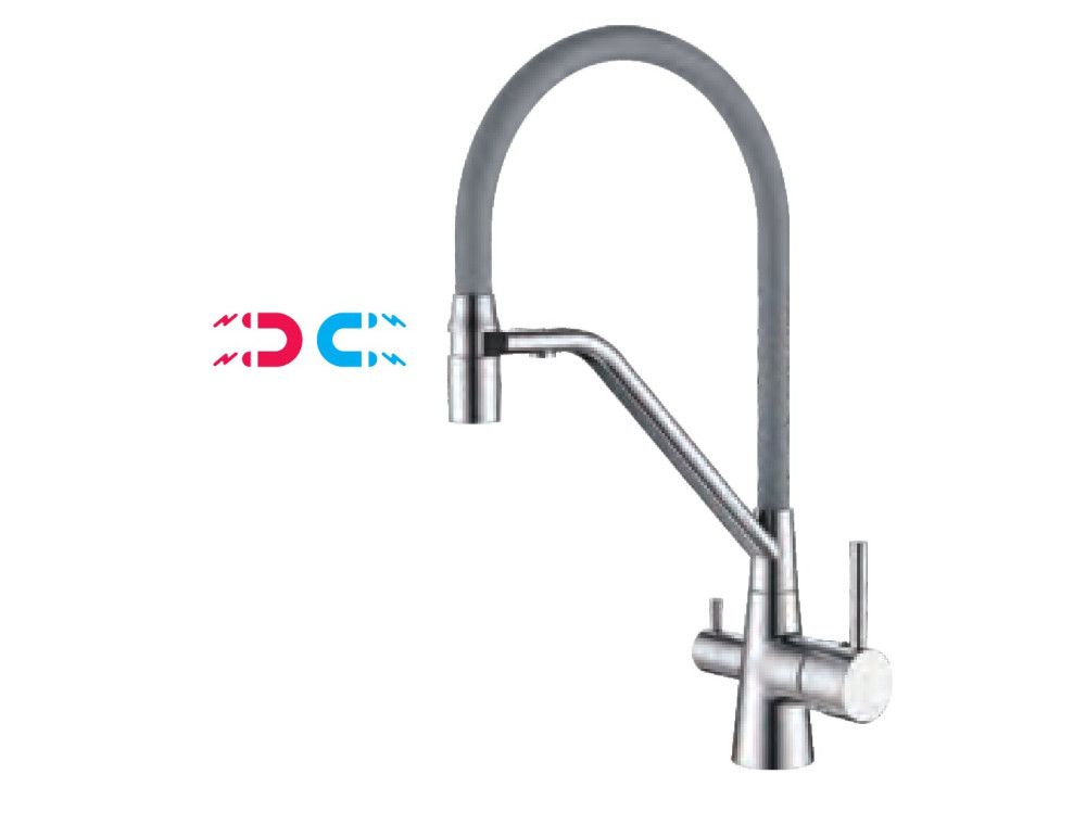 Смеситель для кухни Ledeme L4897A-9 с гибким силиконовым изливом, фиксацией излива на магните и с функцией подключения фильтра питьевой воды;